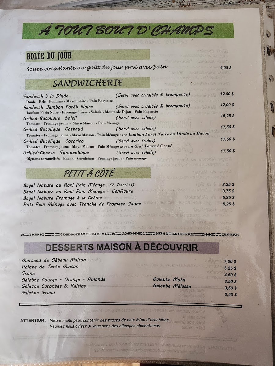 Café Le Bucolique De Ste-Flore offers a menu that effortlessly blends classic café comforts with a touch of refined charm. Their Latte is a standout, perfectly balanced with creamy froth and rich espresso, while the Bol de Café Au Lait provides a heartwarming, milky coffee experience that pairs beautifully with any morning treat. Breakfast favorites like the Oeuf Bénédictine are elegantly presented, with perfectly poached eggs and a velvety hollandaise that elevates the dish beyond the ordinary. For a sweet-and-savory option, the Crêpe Pommes Jambon Fromage impresses with tender crepes wrapped around apple, ham, and melted cheese, offering a harmonious combination of flavors that feels both comforting and indulgent. Overall, the menu at this Grand-Mère café demonstrates a careful attention to both quality and presentation, making each dish memorable and inviting for anyone seeking a leisurely, satisfying meal.